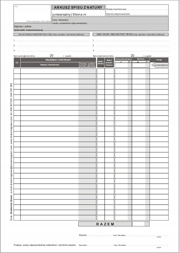 sicienko.pl Arkusz Spisu Z Natury 341-1 - Różne - Druki Firmowe - Drukarnia